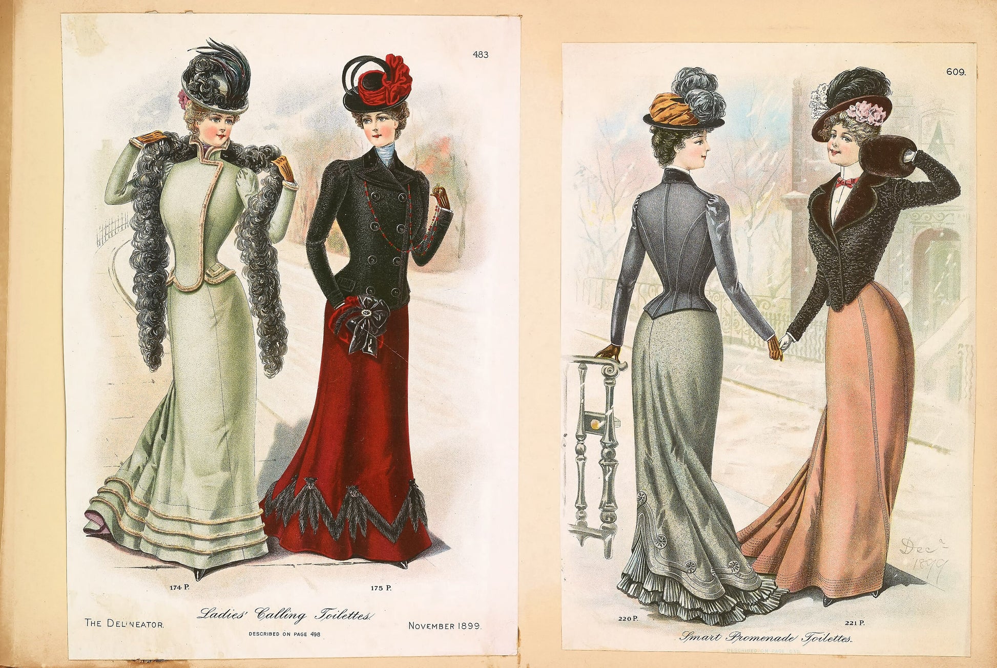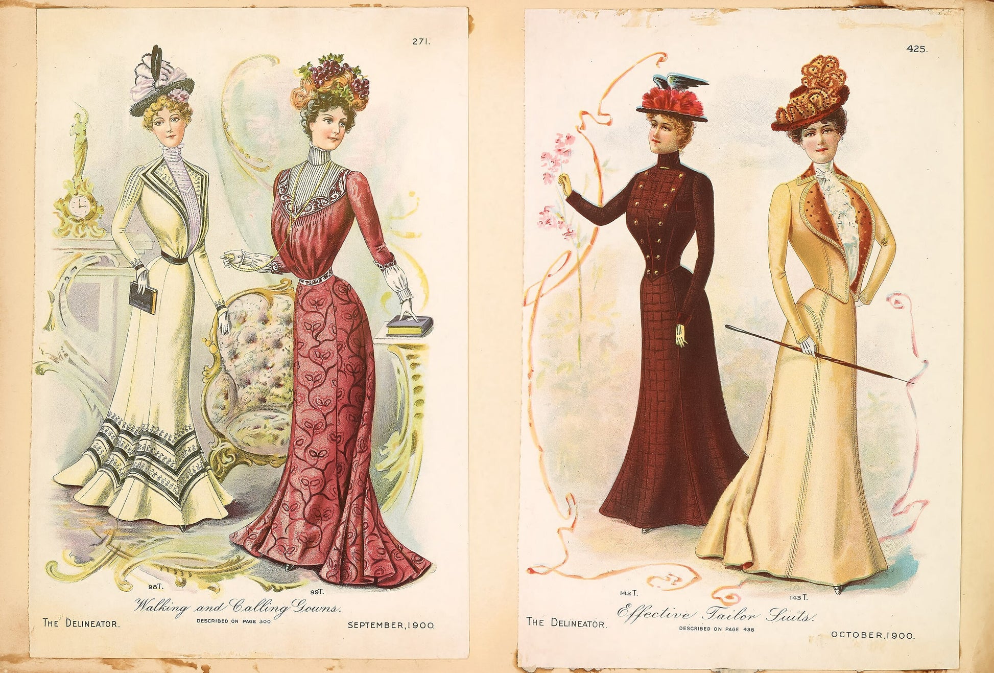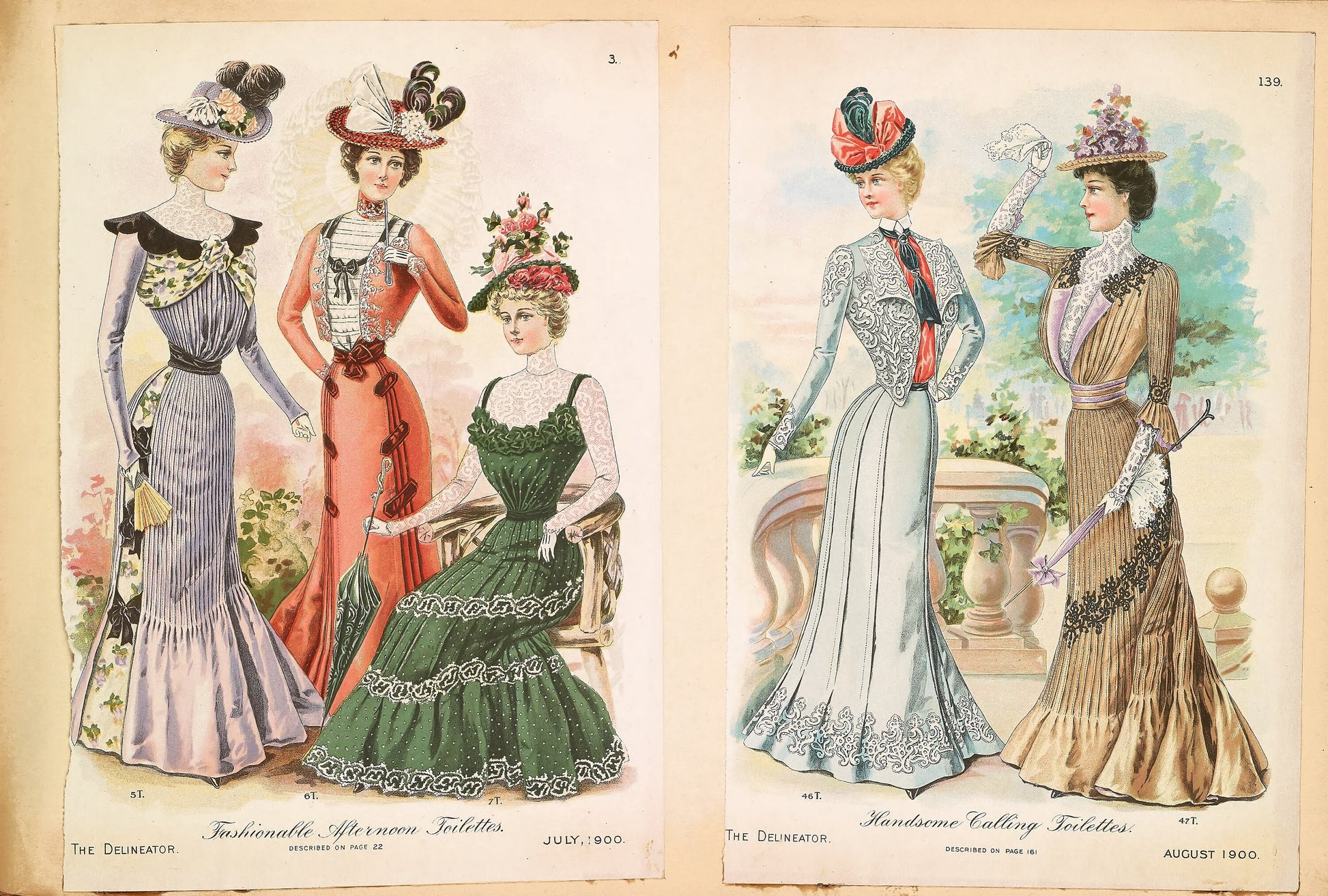 These fashion plates are illustrated plates or prints that were commonly used in the late 18th and early 19th century to showcase the latest fashion trends. These plates were often included in fashion magazines, catalogs, and pattern books, and were highly popular among women who wanted to stay up-to-date with the latest styles.