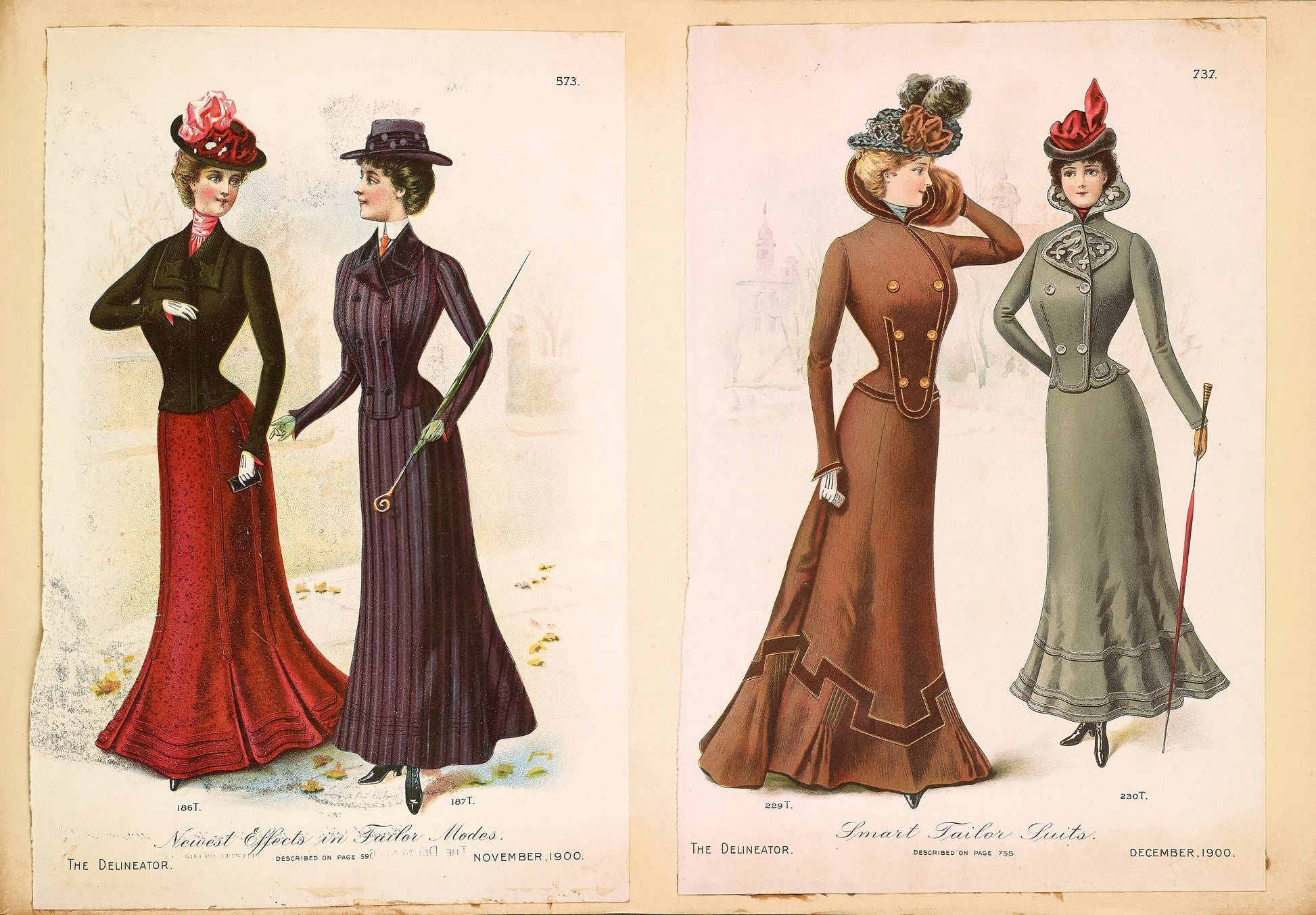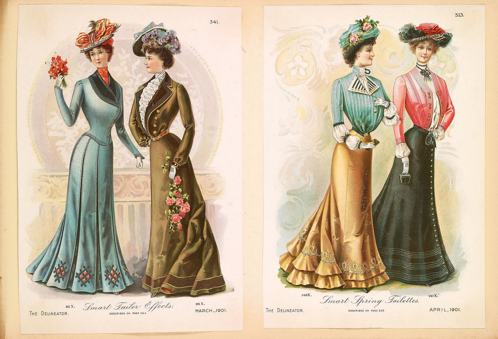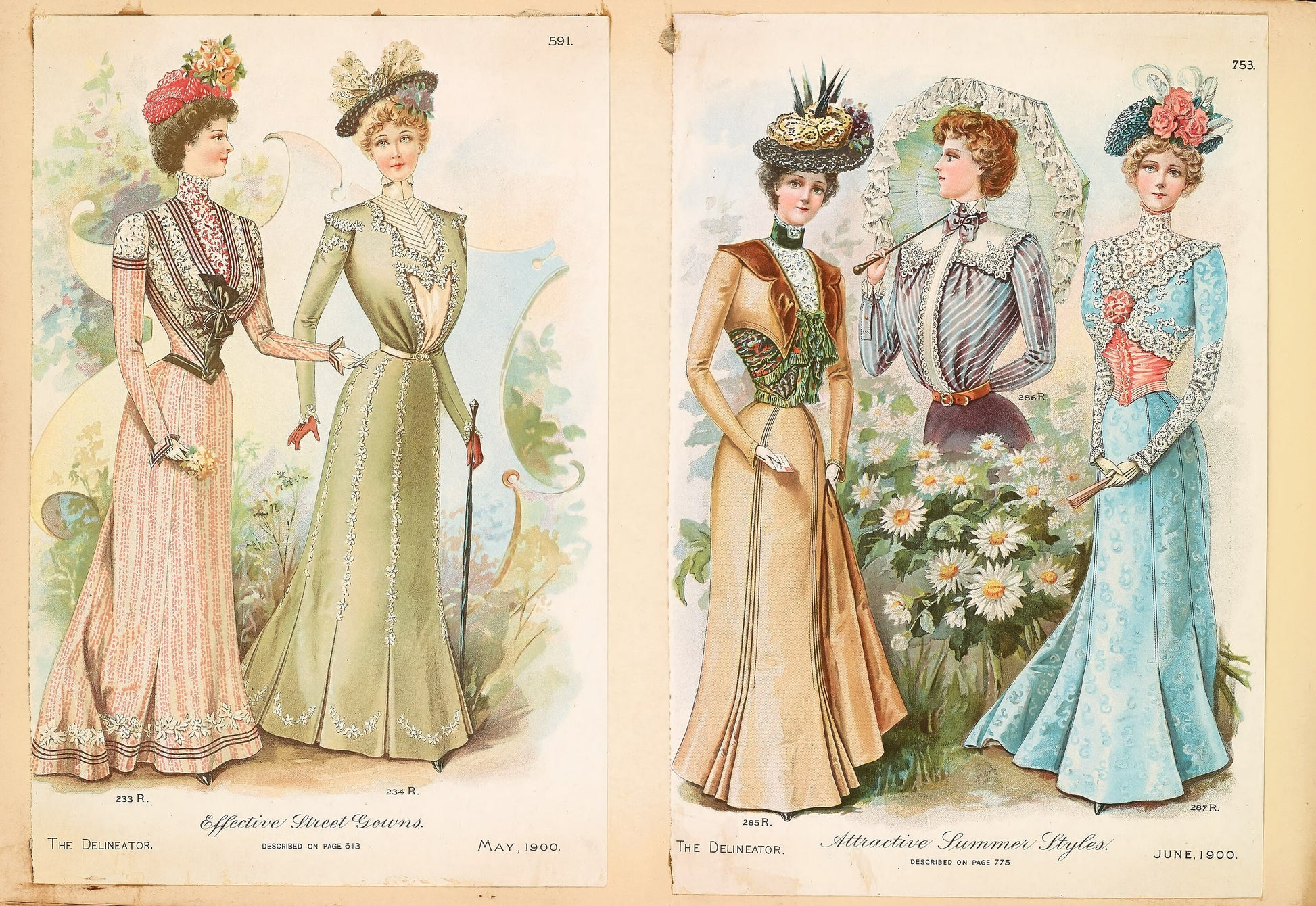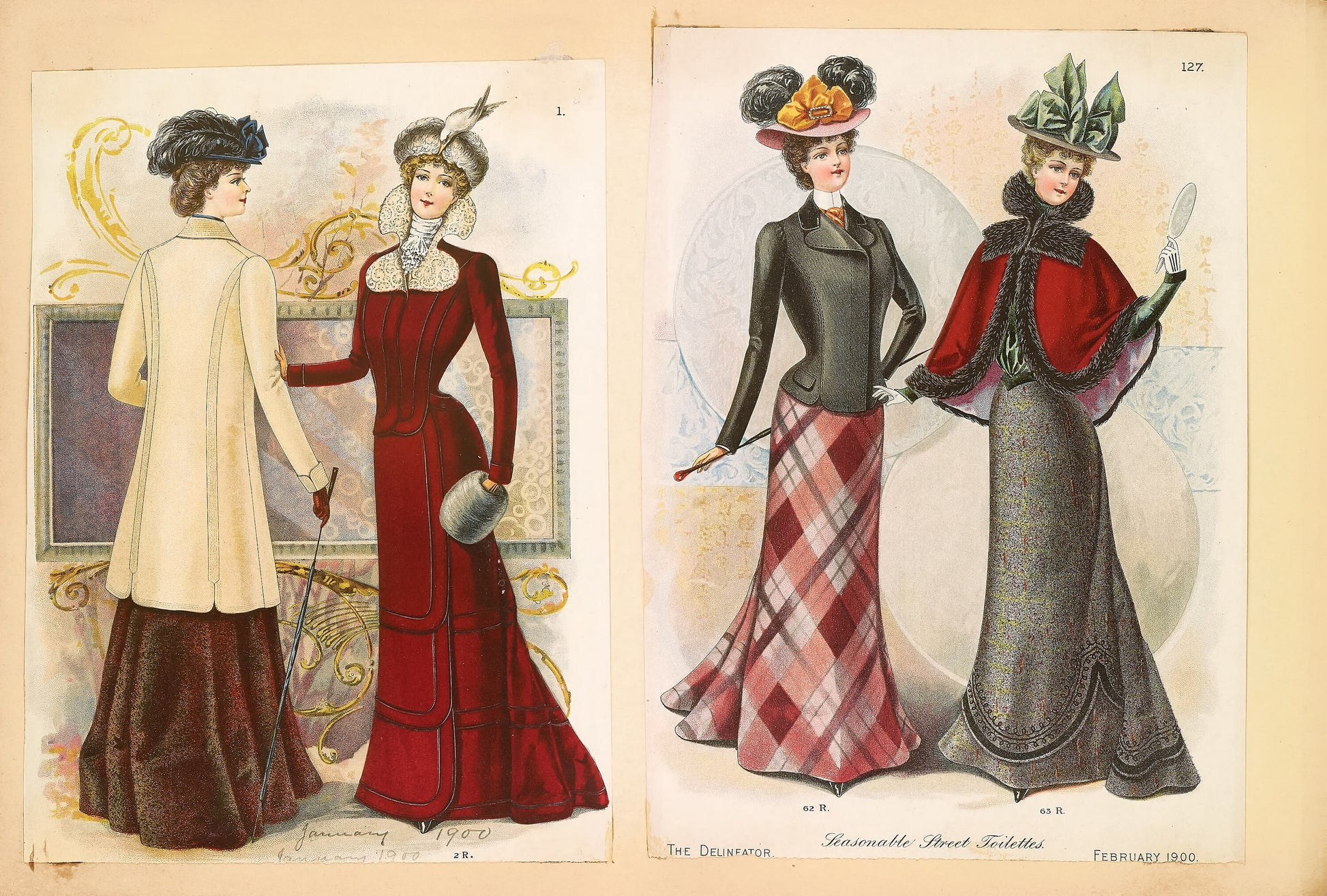 These fashion plates are illustrated plates or prints that were commonly used in the late 18th and early 19th century to showcase the latest fashion trends. These plates were often included in fashion magazines, catalogs, and pattern books, and were highly popular among women who wanted to stay up-to-date with the latest styles.
