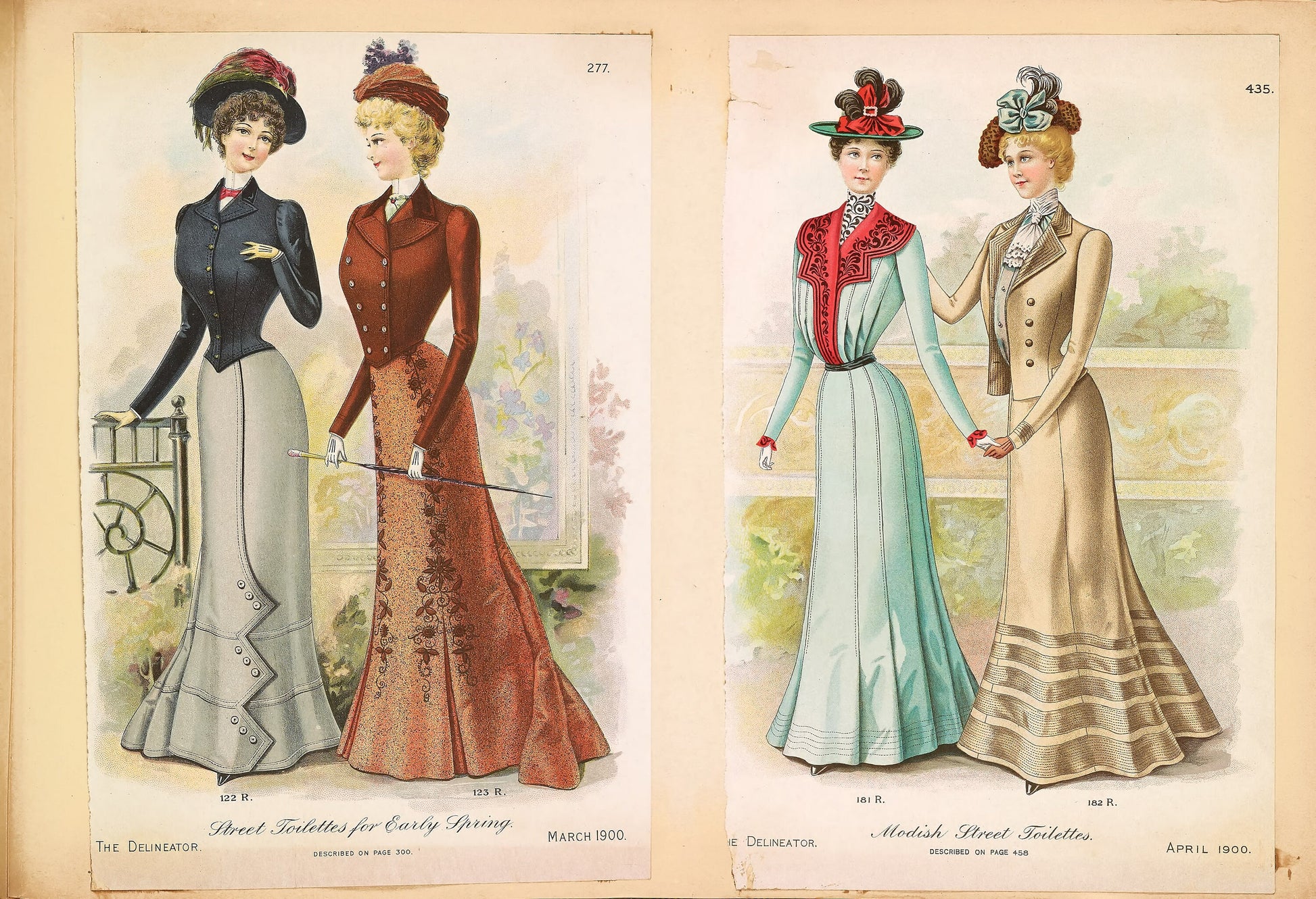 The fashion plates were usually created by skilled illustrators or artists, who would use a combination of hand-drawn sketches and watercolors to depict the latest clothing designs. These designs ranged from everyday wear to high-end fashion, and were often accompanied by detailed descriptions of the materials used, the style, and any special features or accessories.
