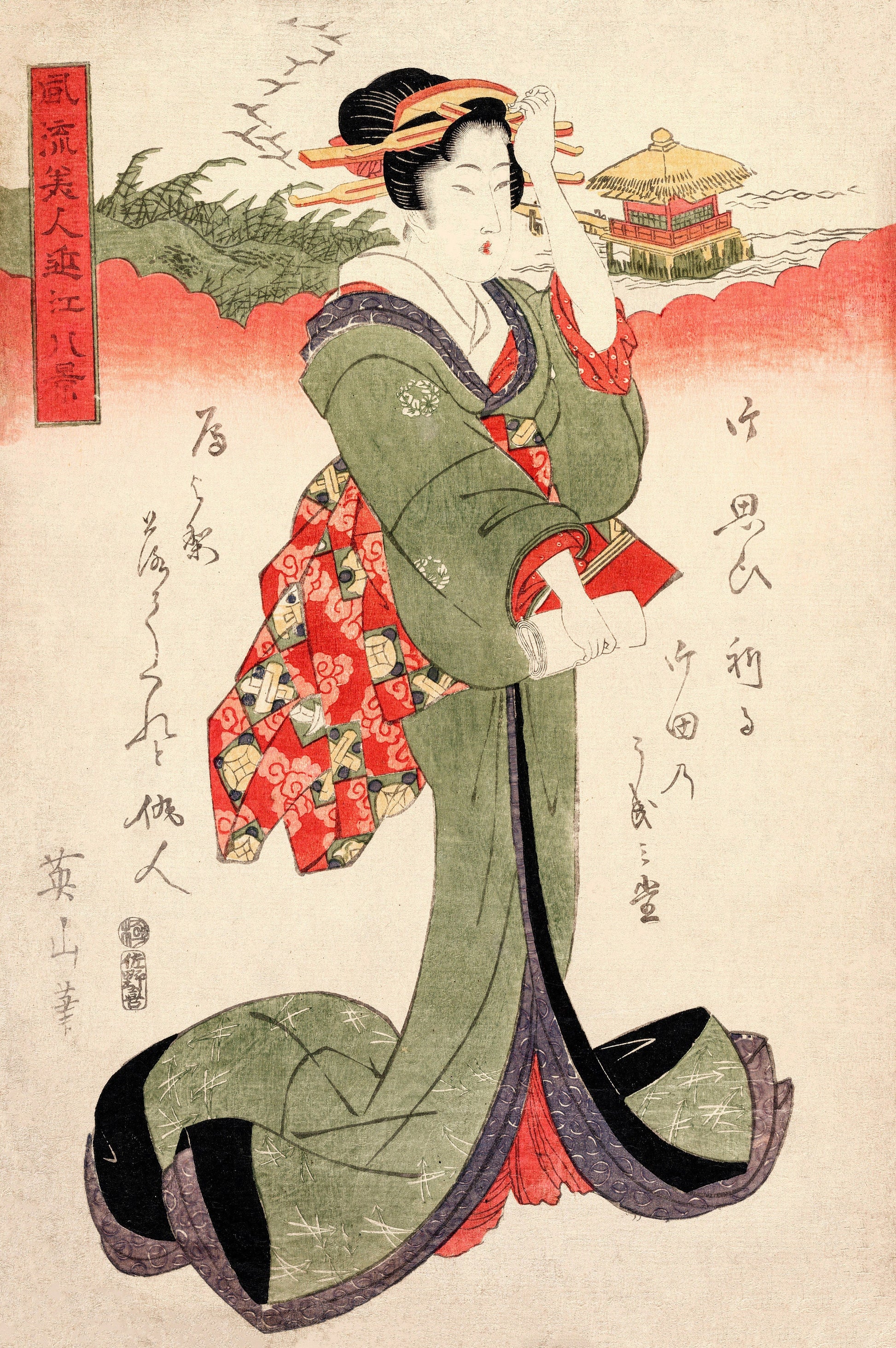 Kikukawa Eizan (1787-1867) was a Japanese ukiyo-e artist known for his prints of beautiful women (bijin-ga) during the late Edo period. He was a member of the Kikukawa school of ukiyo-e, which specialized in prints of actors and beautiful women.