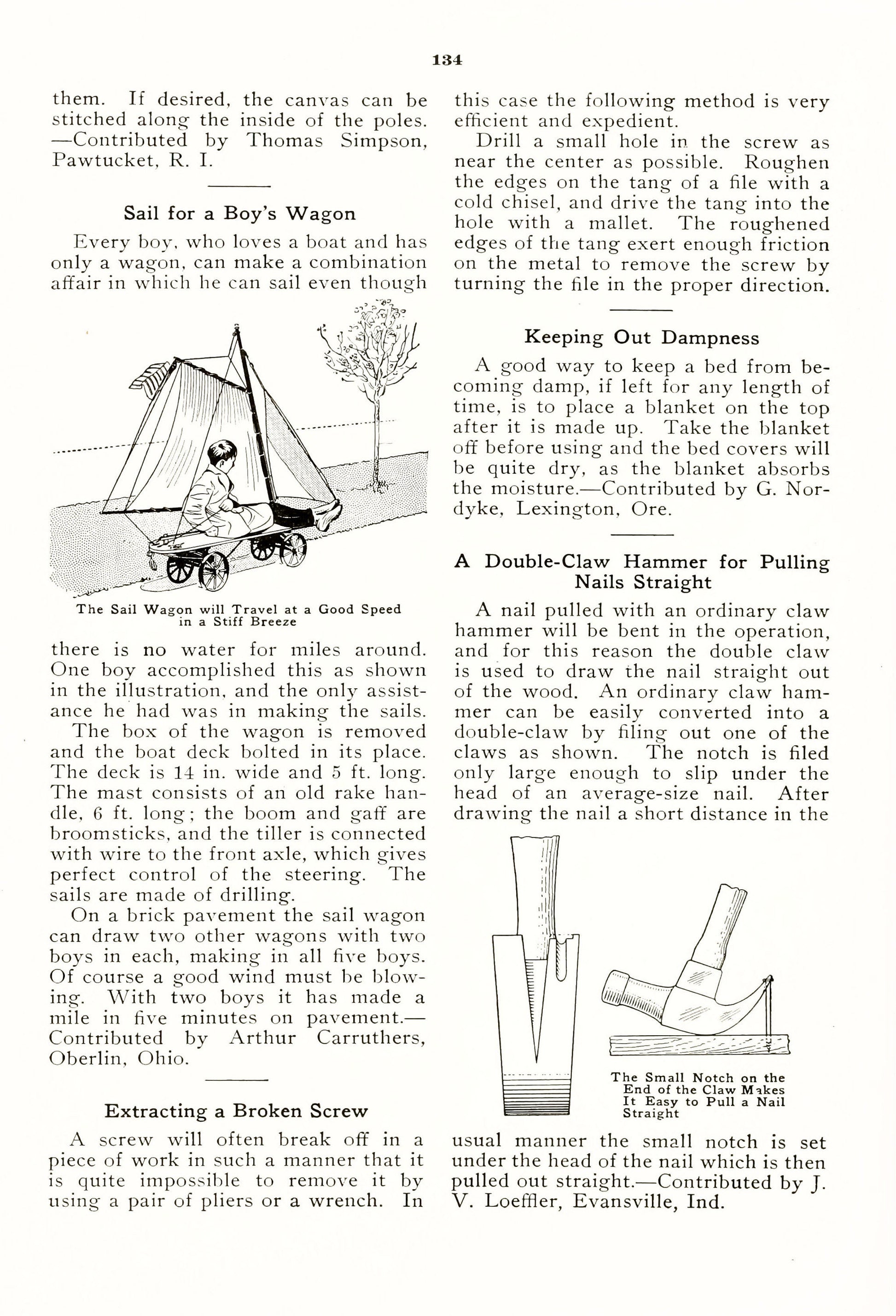 The Boy Mechanic: Book 2: 1000 Things for Boys to Do is a book of DIY projects and activities aimed at young boys. It was first published around 1915 and contains instructions and illustrations for various projects such as making a homemade telegraph, building a tree house, making a miniature electric motor, constructing a simple water wheel, and more. The book was intended to encourage creativity and problem-solving skills in young boys and provide them with enjoyable and productive hobbies. It was part of a series of similar books that were popular at the time.
