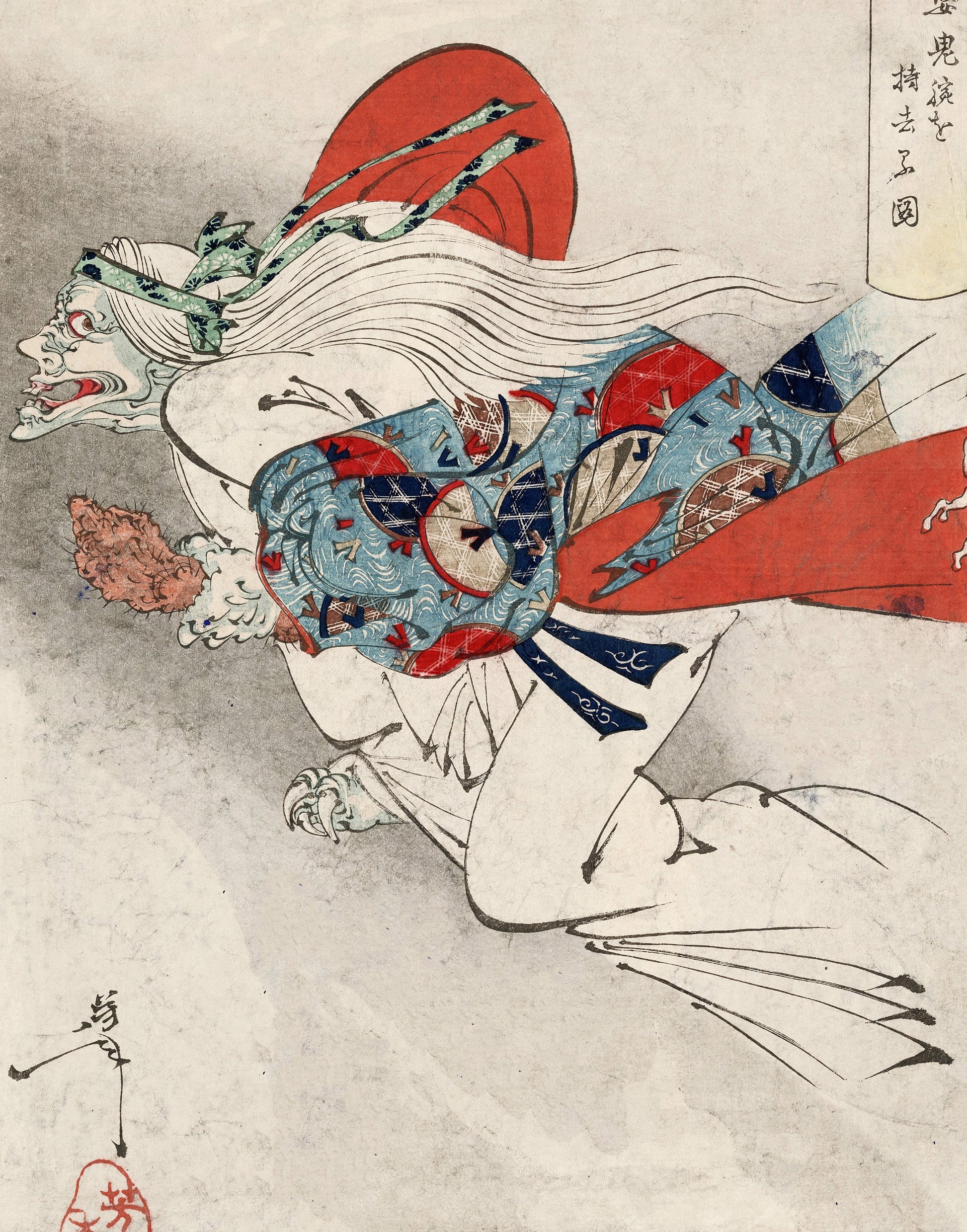 Yoshitoshi's prints often depicted violent and gruesome scenes, such as battles, executions, and supernatural creatures. He was known for his ability to capture the horror and intensity of these scenes, as well as his skillful use of color and composition to create a sense of drama and tension.