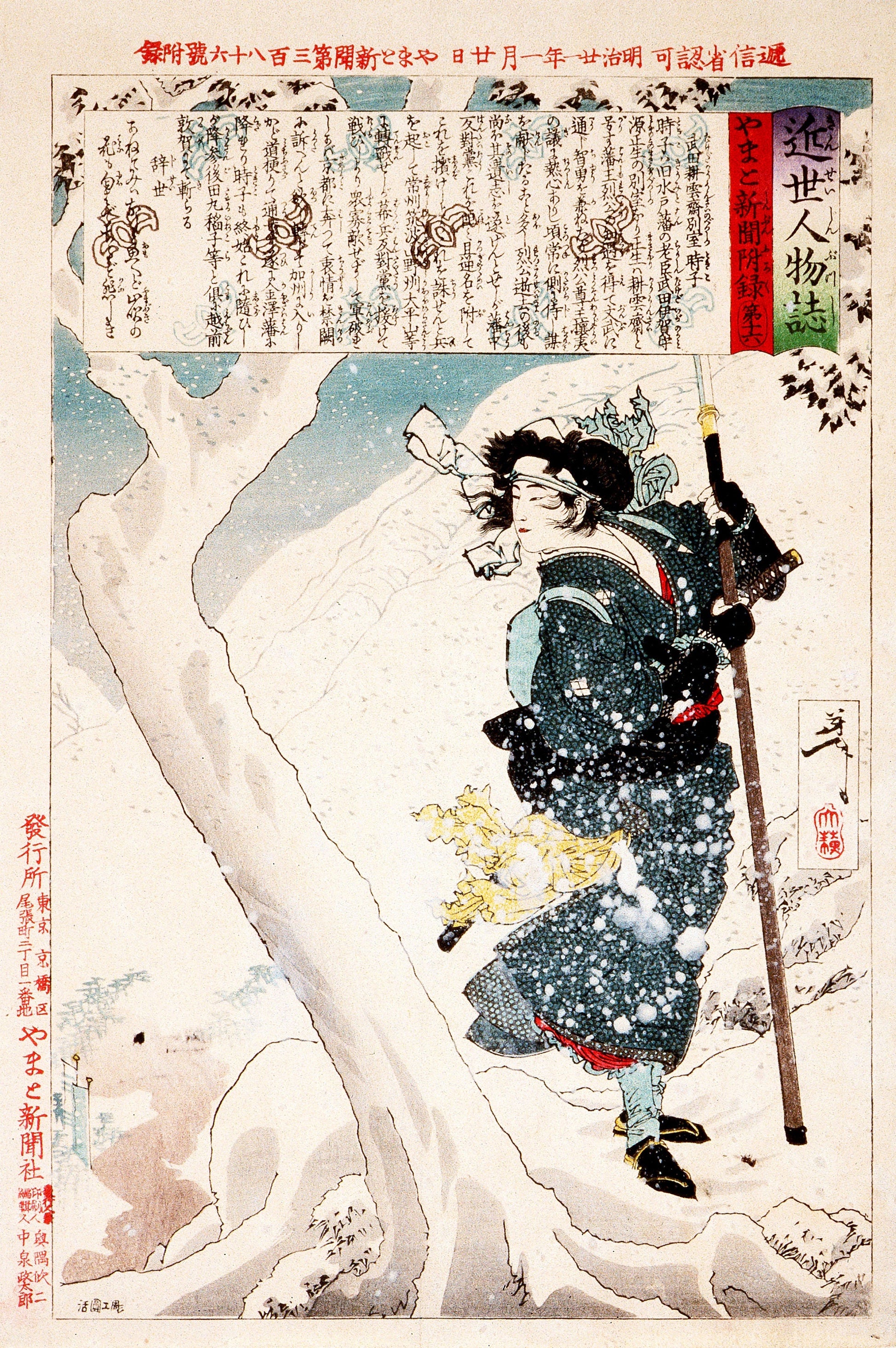 Yoshitoshi was born in Edo (modern-day Tokyo) and began his career as a student of ukiyo-e artist Utagawa Kuniyoshi. He later struck out on his own and developed his own unique style, which was characterized by bold, vivid colors, intricate detail, and a strong sense of drama and emotion.